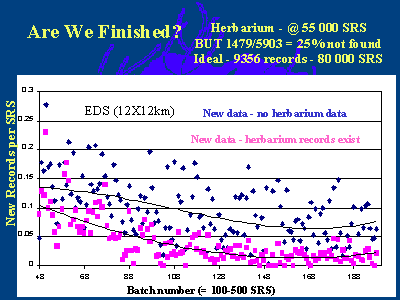 The data show that the herbarium data reached effective zero at about 55 000 SRS.